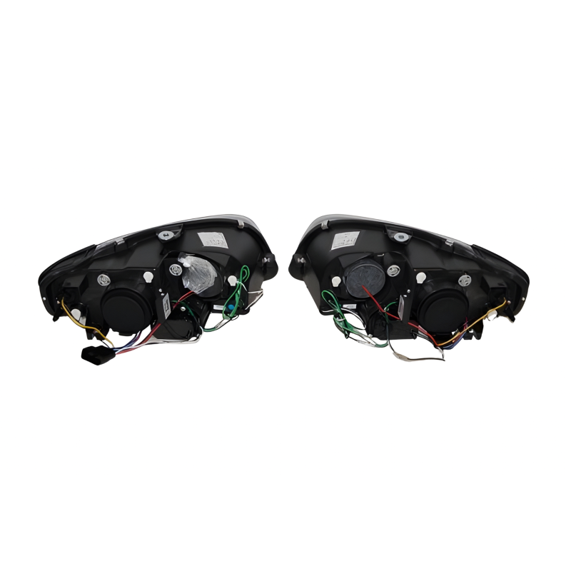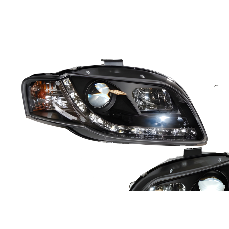 Conjunto de faros delanteros con luz de día para el Audi A4 del año 2005 al 2008 con el fondo en negro.